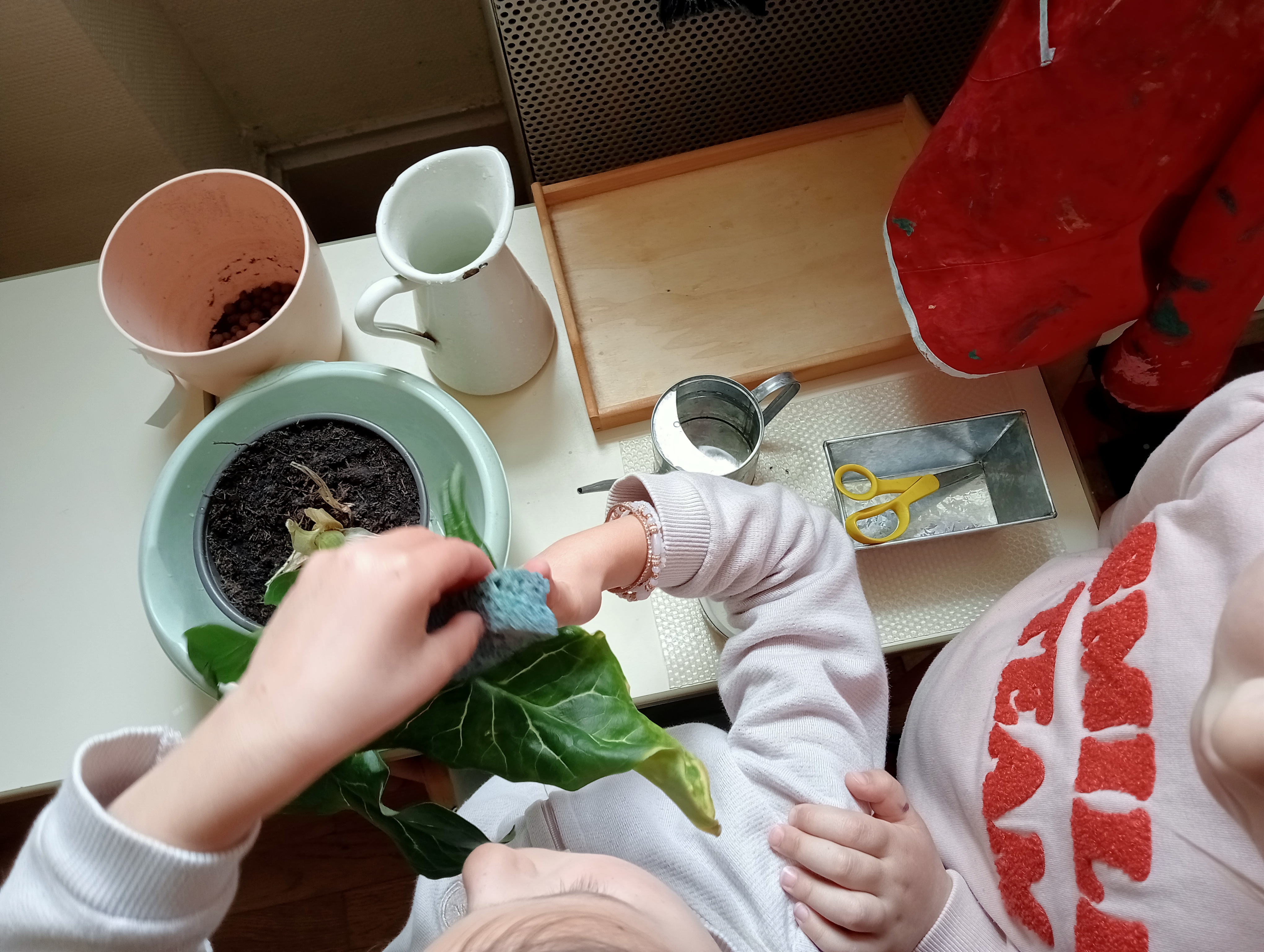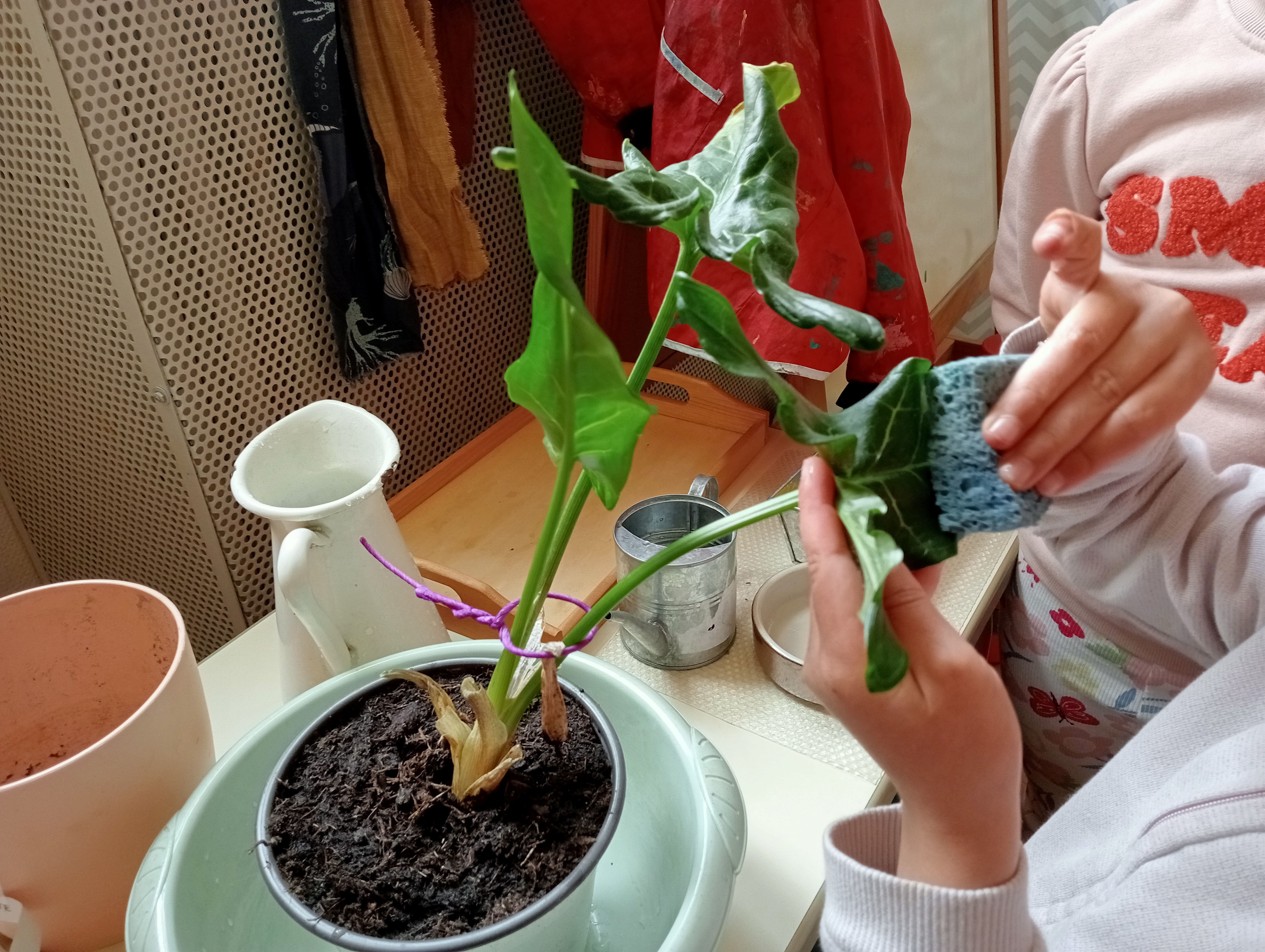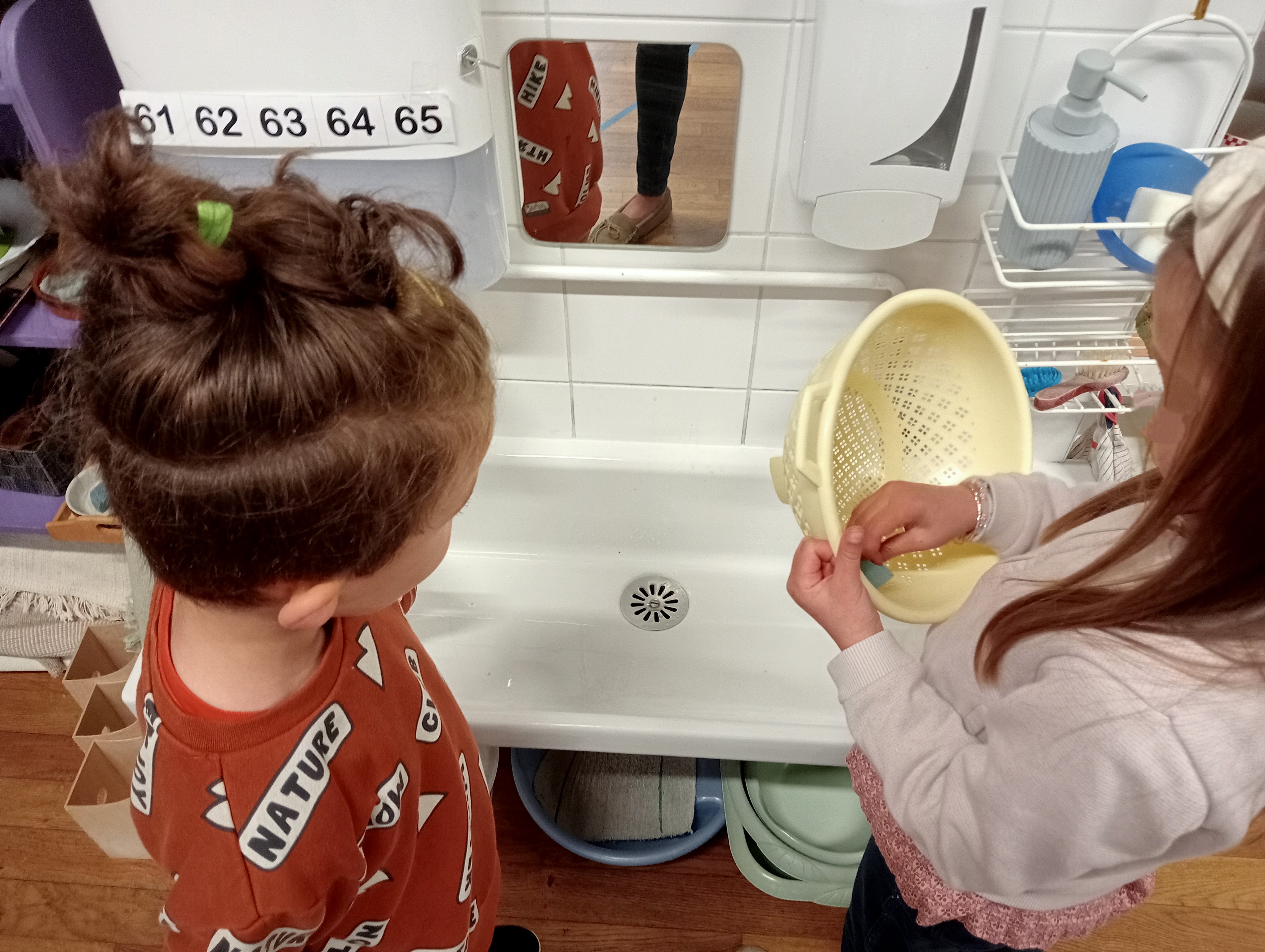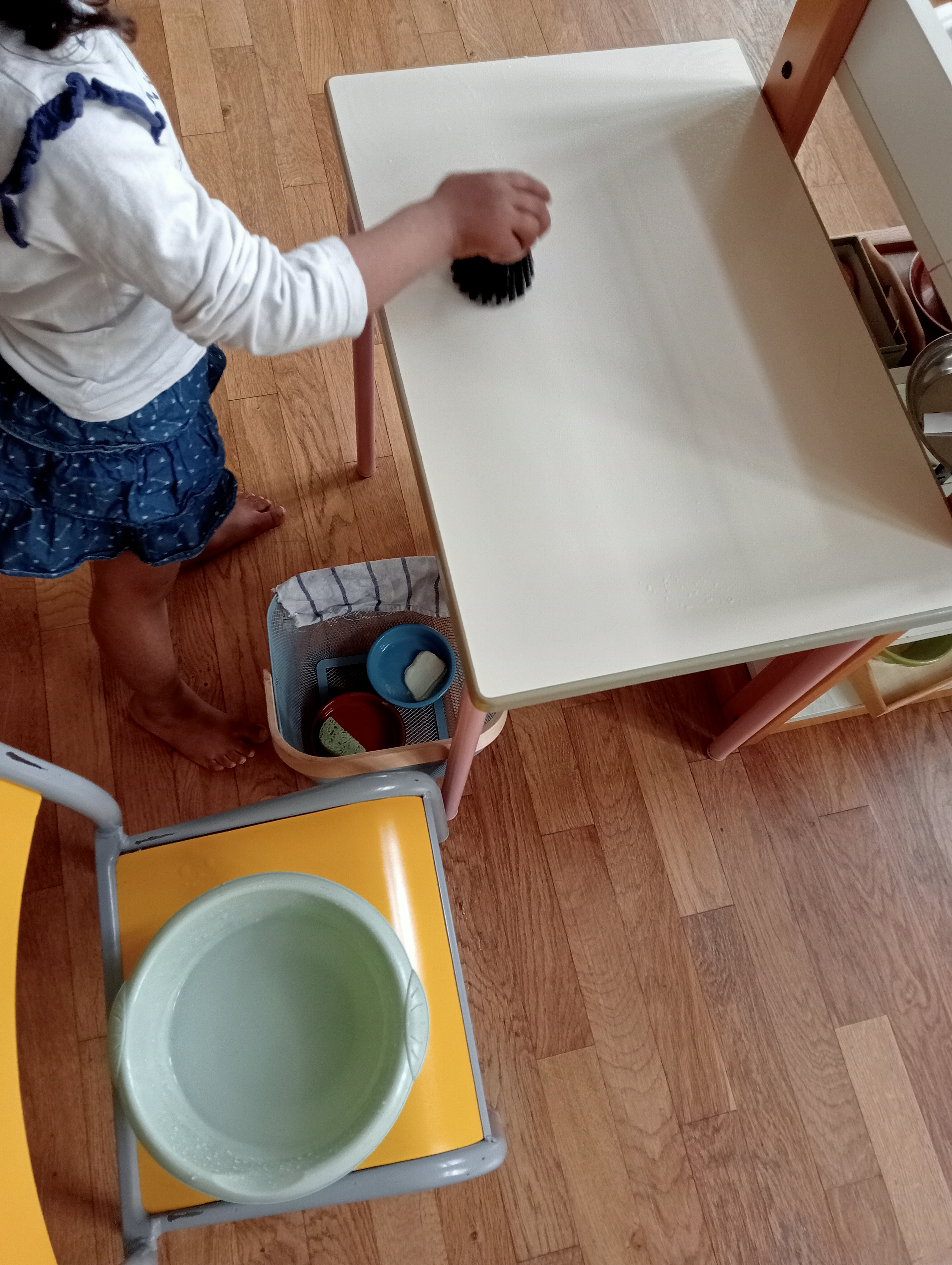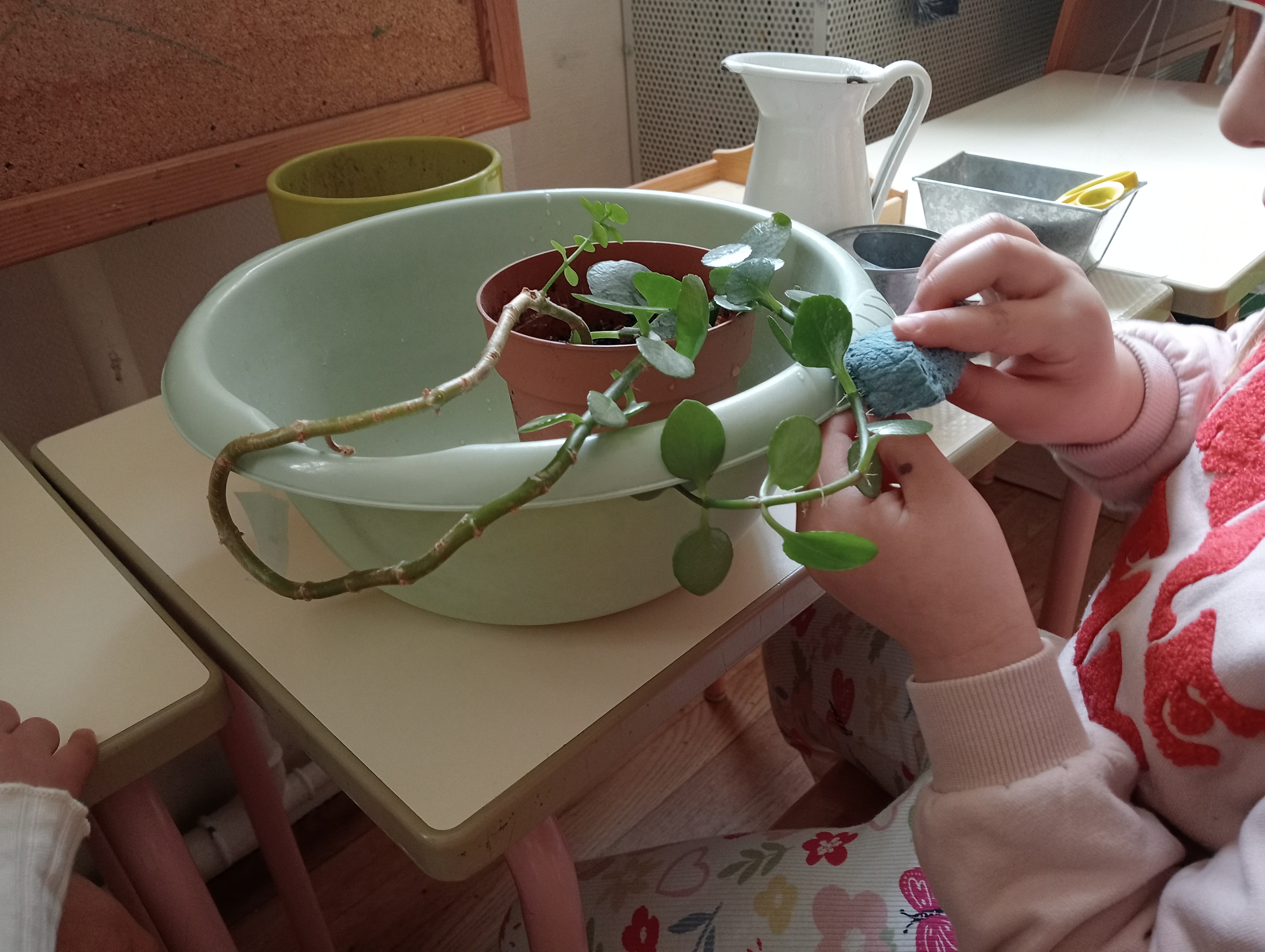 L’erreur fait partie du processus d’apprentissage, et il est nécessaire de montrer comment la contrôler, par exemple en expliquant comment utiliser une éponge correctement ou en corrigeant les déversements d’eau. L’éducateur guide calmement l’enfant, l’aidant à affiner ses gestes, sa mémoire et son contrôle inhibiteur au fur et à mesure qu’il s’exerce.