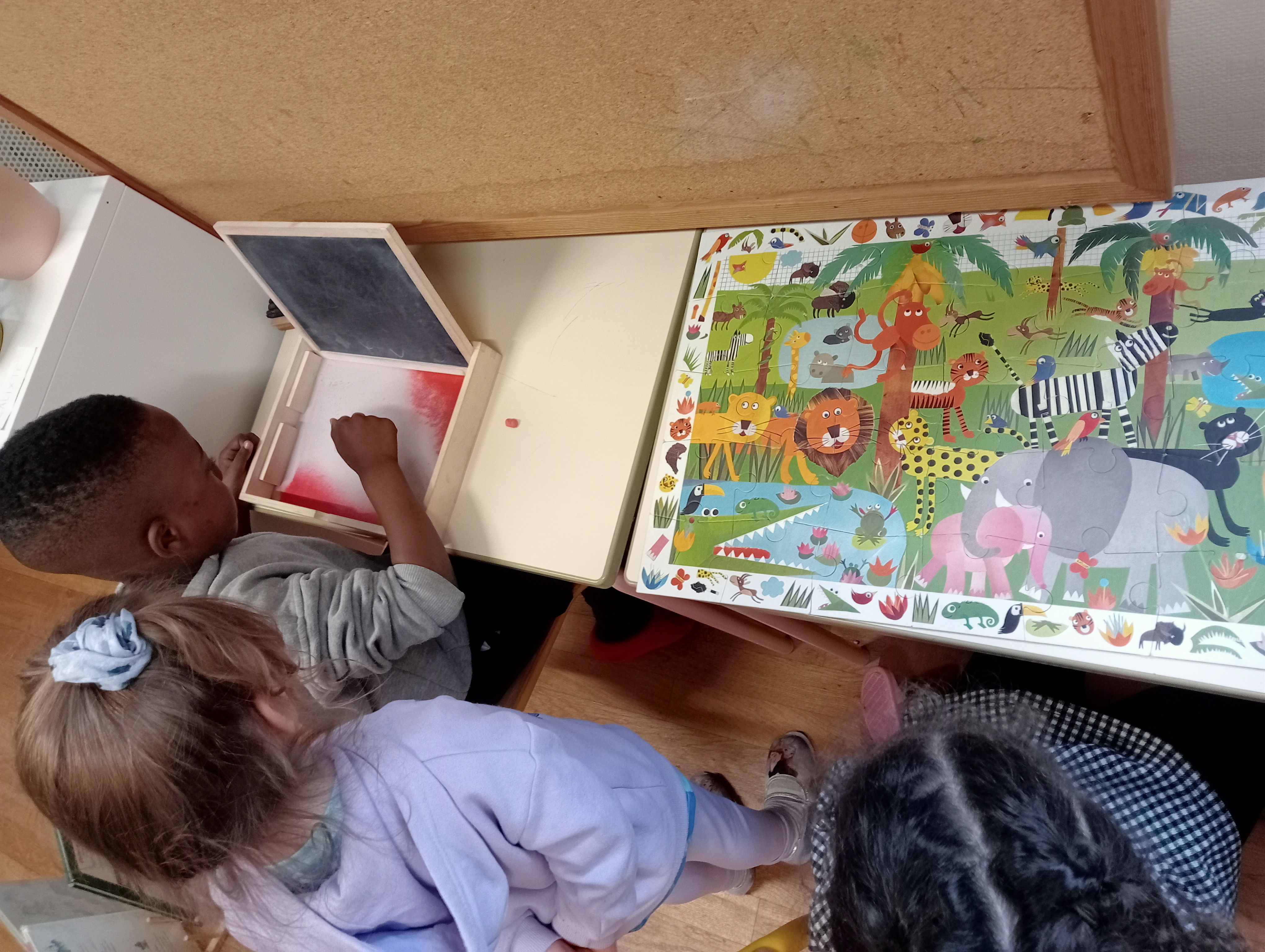 Dans cette perspective, j’ai opté pour une approche pédagogique individualisée, travaillant avec un enfant à la fois. Cette approche me permet de répondre aux besoins spécifiques et au rythme de chaque enfant, favorisant ainsi son activité, sa motivation et son attention. En outre, en favorisant l’attention partagée [3], où un adulte travaille avec un ou deux enfants, nous optimisons le processus de mémorisation et renforçons l’interaction sociale, contribuant ainsi à l’apprentissage et au développement global de l’enfant.
