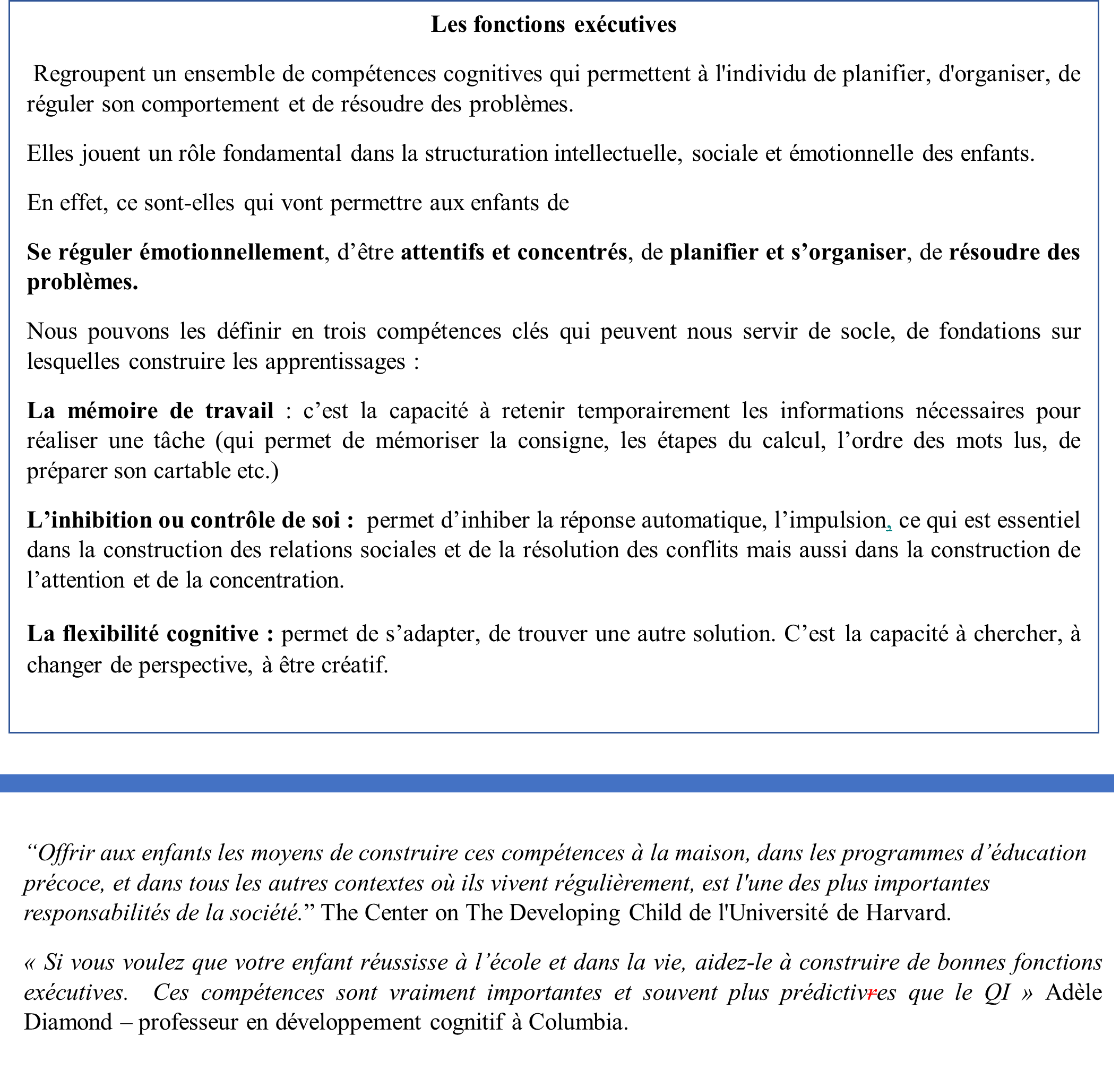 J’ai découvert le rôle fondamental des fonction exécutives [1] chez les enfants de 2 à 6 ans