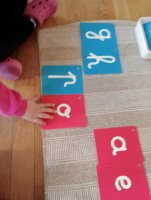 Puis, quand l’enfant à m émorisé les sons des voyelles et de quelques consonnes, je commence à l’inviter à associer des phonèmes pour composer des syllabes et à décoder des syllabes avec les lettres rugueuses. Décoder et encoder sont deux activités que je leur fais pratiquer en parallèle. (Voir les travaux de Stanislas Dehaenes sur la lecture op.cit.)
