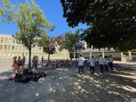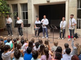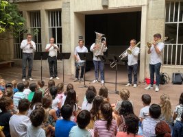 En plus de l’interprétation de différentes pièces musicales, les élèves de ces deux écoles ont eu droit à une présentation des différents instruments (cuivres) ainsi qu’à des temps de questions/réponses.